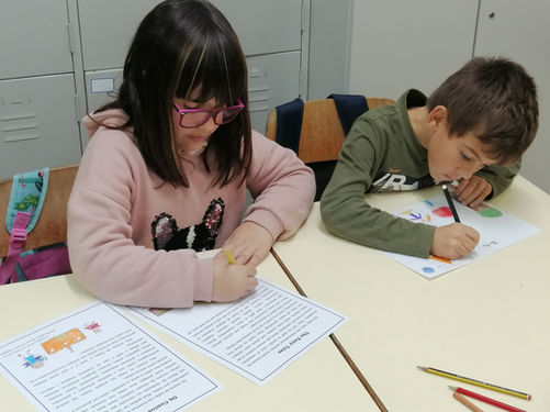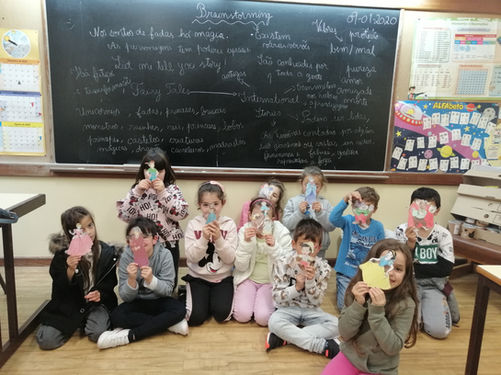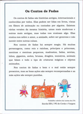 To introduce the theme of the fairy tales, one of the second-grade classes reflected upon the stories and did a brainstorm of ideas. A game was played where they had to identify the characters and the story it belonged. After that, a collective text was written and illustrated with drawings of their favourites tales.