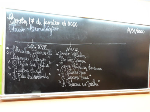 Seizing the opportunity, the students were already participating in a local reading project, we developed the work around the evolution of Fairy Tales. After they presented their stories, the students research for the books and authors and built a timeline. As a result, they organized the information they gathered in a poster.